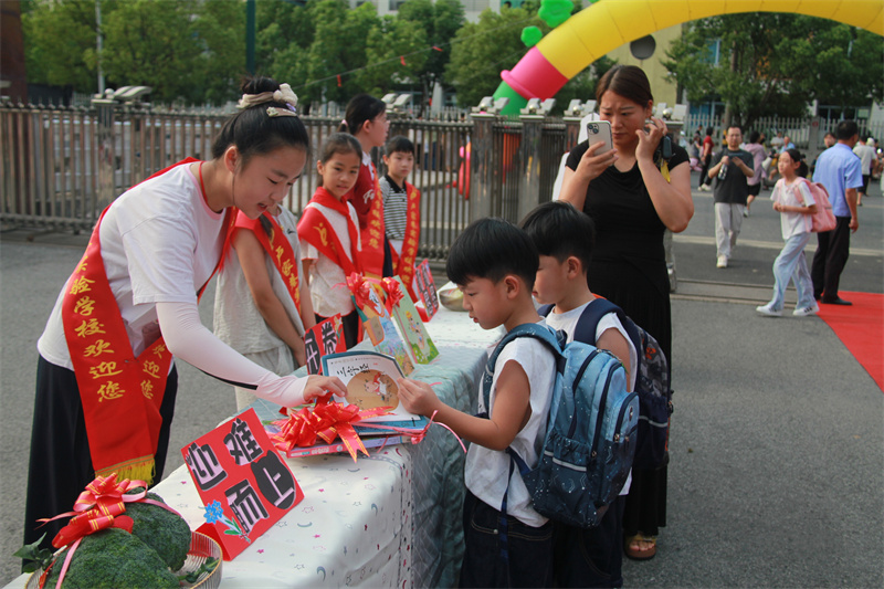 背起小书包,踏着轻快的步伐,卢实学子穿过五彩拱门,步入象征希望与梦想的红毯,兴致满怀地拥抱新学期。一年级的“小萌新”们带着童真与好奇,捏一捏菱角、扛一扛西芹、翻一翻书本……少先队大队委员代表把新学期美好的祝福送给新入学的学弟、学妹们,期待刚刚成为小学生的他们个个聪明伶俐,在学习生涯中能够做事勤勤恳恳,学习上泛舟书海,感受到“开卷有益”,遇到困难时更能毫不畏惧、迎难而上,成为最棒的自己!