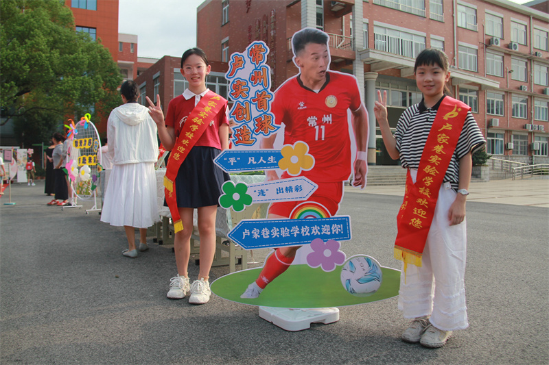 “进一球,赢一场。”为我们实现“常州首球”突破的赵连平老师与小朋友们亲切合影,一年级级组、体育组、音乐组的教师代表早早守候在校门口,指导入学的孩子们重温足球运动,共同体验“卢实首球,由你开踢”的乐趣。一年级的小学生也在父母的陪伴下,老师的指导下试着带球过桩,期望他们成为小学生后以今天为起点以勇敢为翼,以智慧为帆,闯过成长的每一关,绘就自己的小精彩!
