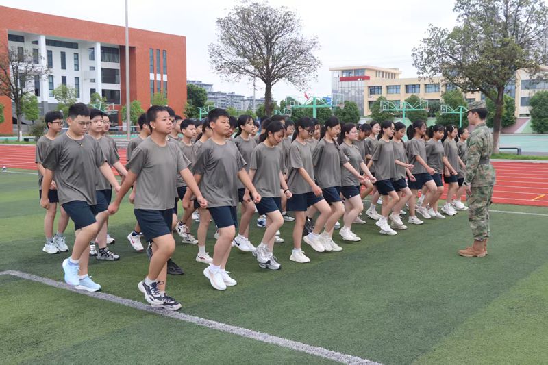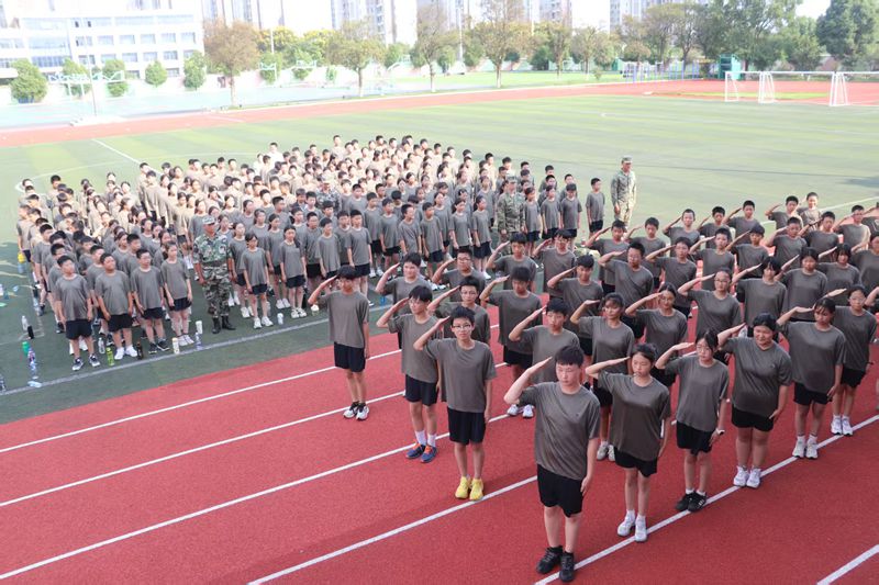经过三天的磨砺与成长,9月19日下午3时,结业仪式暨会操评比在学校操场隆重举行。校领导、基地教官与七年级全体师生齐聚一堂,共同检阅训练成果。