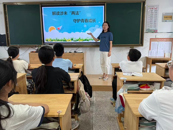 班会课上,各班班主任结合初中生身心特点,围绕《未成年人保护法》《预防未成年人犯罪法》等法律法规,通过案例分析、情景模拟、互动问答等形式,深入浅出地讲解了校园欺凌、网络诈骗、交通安全等与学生日常生活密切相关的法律知识。有的班级播放了法治教育短片,以真实案例为切入点,引导学生思考违法行为的危害;有的班级组织学生扮演“法官”“律师”,模拟法庭审判过程,在沉浸式体验中感受法律的威严与公正;还有的班级通过小组讨论,鼓励学生分享身边的法律故事,增强守法用法意识。