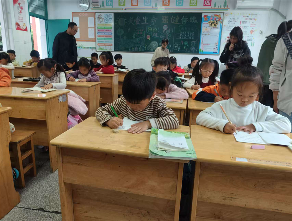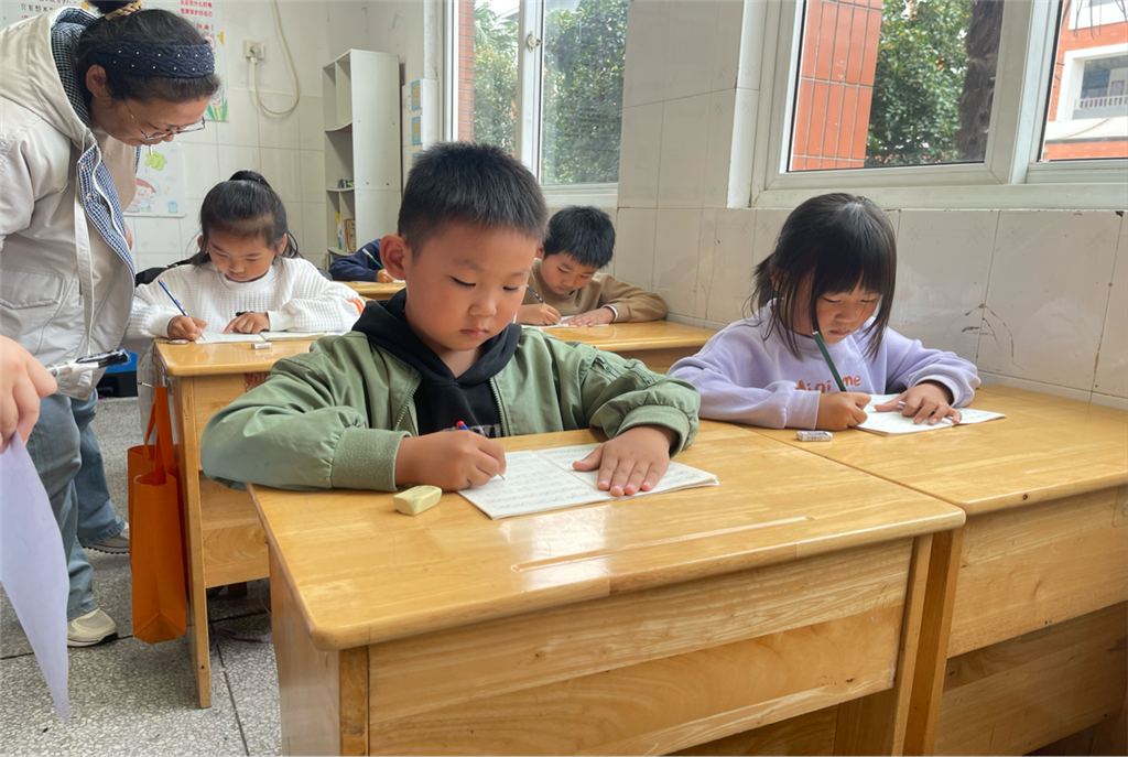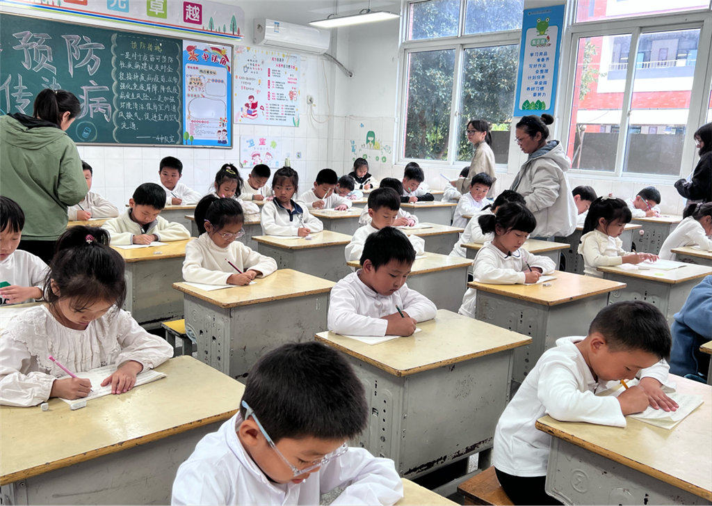 本次大赛采用“年级展示”的形式,各班通过日常观察、课堂指导,再进行年级层面的集中展示。评委老师们从握笔姿势的规范性、动作的稳定性等方面进行打分。