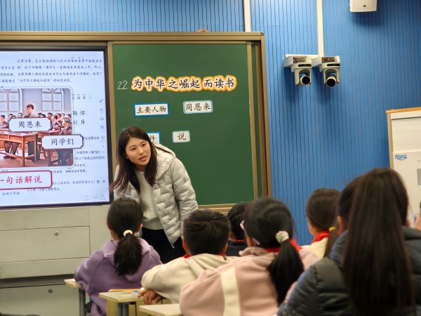 下午的语文、数学、英语学科课堂同样亮点凸显,我校授课教师兼顾基础夯实与素养提升,呈现多堂高质量精品课:语文课上,《日月明》以识字规律为抓手,用生动有趣的形式助力低年级学生筑牢识字根基;《为中华之崛起而读书》以经典文本为载体,引导学生感悟先辈家国情怀,厚植爱国初心。数学课上,《两位数加、减两位数》聚焦运算能力培养,通过生活化情境搭建知识桥梁;《用字母表示数》打破传统教学模式,启蒙学生代数思维,助力思维能力进阶。英语课上,教师依托鲜活课堂情境,以《Unit7 At Weekends》《Unit6 Is he your grandpa?》为内容,引导学生主动参与语言表达,切实提升英语运用能力。