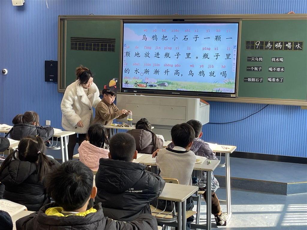 课堂上,张老师以情境教学法为抓手,通过谜语导入创设直观情境,借助水瓶图片对比让学生感知乌鸦的困境,并巧用 “渴”与“喝”的字形对比突破识字难点。朗读训练中,张老师通过“指名读、开火车读”等多种形式,引导学生读出乌鸦的情绪变化,让朗读与理解相辅相成。整堂课以具象思维为主导,将“一篇”文本的学习与“一本”整本书阅读的启蒙方法渗透其中,为幼小衔接阅读教学提供了可借鉴的鲜活范例。